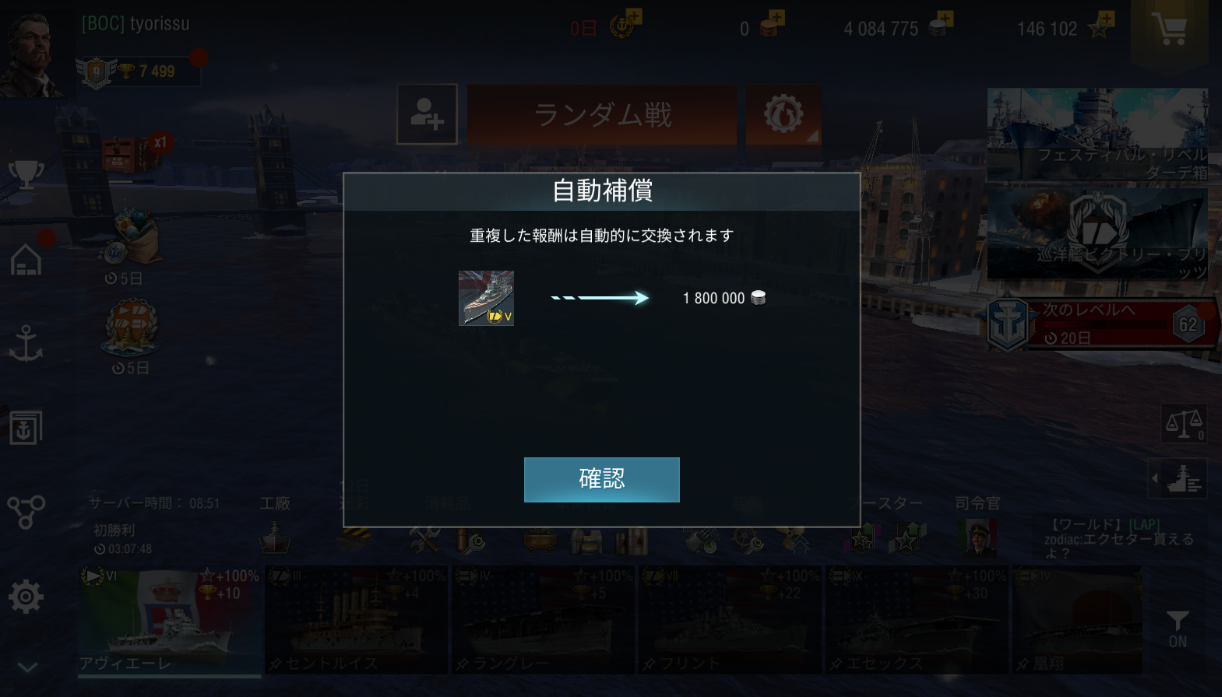 World of Warships Blitz エクセター無料配布中 nanashi64 公式フェイスブックアカウントに書いてあるコードを入力すると貰えます。俺氏は既に任務箱から入手済みでありますが、それでも1.8Mシルバー貰えるのはいいね。入力前にエクセターを売却しておくとスロットを増やせるんですけど、プレ艦でやる勇気が俺には無かった。偽情報だったら悲しいじゃん? 著者について nanashi64 Administrator ウェブサイトにアクセスしてください すべての投稿を表示します Post navigation Previous: 汎アメリカ巡洋艦ツリー・アーリーアクセス&第6回パーソナルチャレンジNext: 竜と戦車とミサイルと コメントを残す コメントをキャンセルメールアドレスが公開されることはありません。 ※ が付いている欄は必須項目ですコメント ※ 名前 メール サイト 関連するストーリー World of Warships Blitz World of Warships Blitz日記365・戦艦コネティカット nanashi64 World of Warships Blitz World of Warships Blitz日記364・駆逐艦ツェアシュテーラー1 nanashi64 World of Warships Blitz World of Warships Blitz日記363:航空母艦・飛龍41 nanashi64