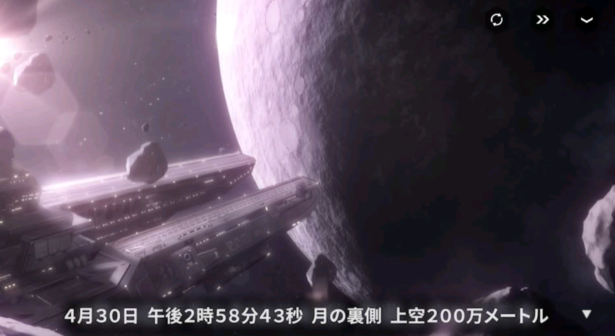 蒼穹戦線作戦がスタート。妨害を受けることなく方舟の軌道投入が完了し、順調に推移します。方舟は原罪の警戒網を回避できるそうなので、ステルス艦ということになりますかな。これに合せて主人公率いるダニューブ特別連合部隊も月へと進出。作戦計画に則りまずは逆愛探しです。