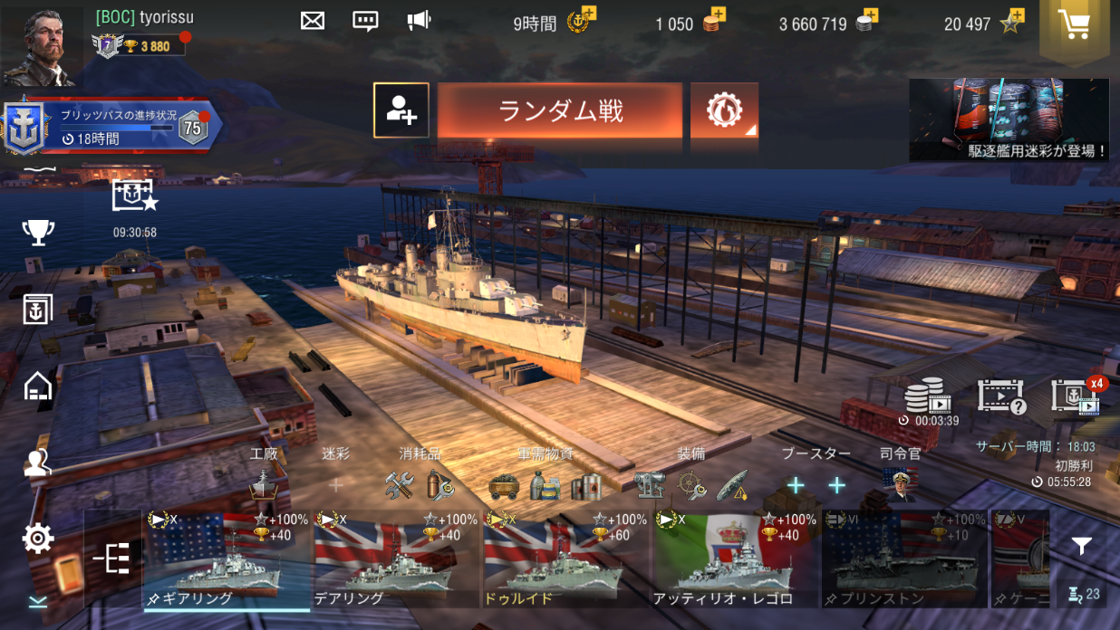 アメリカ駆逐艦ツリーコンプリートです。燃料搭載量の不足が指摘されたアレン・M・サムナー級の拡大版なわけですが、元々はフレッチャー級の主砲を連装化することで対空火器の搭載スペースを増やすことが第一の目的とされており、砲力の強化は必ずしも求められていませんでした。連装砲2基や、それに単装砲塔を追加した5門案もあったそうで、何故主砲6門に拘ったのかは結構謎だったりします。統合揚弾機付きの5インチ砲が増強されたことで、米海軍も秋月型に比類する駆逐艦を手にしたと言えるでしょう。wowsbでは例の如く未完も含めて戦後生まれになったであろう駆逐艦が大量に存在するため、優位に戦えるような性能はありません。一時期は劣化デアリングみたいなきらいもありましたが、現在では対駆逐艦戦闘に優れた駆逐艦が多数実装されたことからデアリングの存在価値の方が危ぶまれており、それよりも射程の長い本艦の方が他の駆逐艦とは違った個性を発揮することができます。実際に使ってみると思ったよりも楽しめるそんな駆逐艦です。