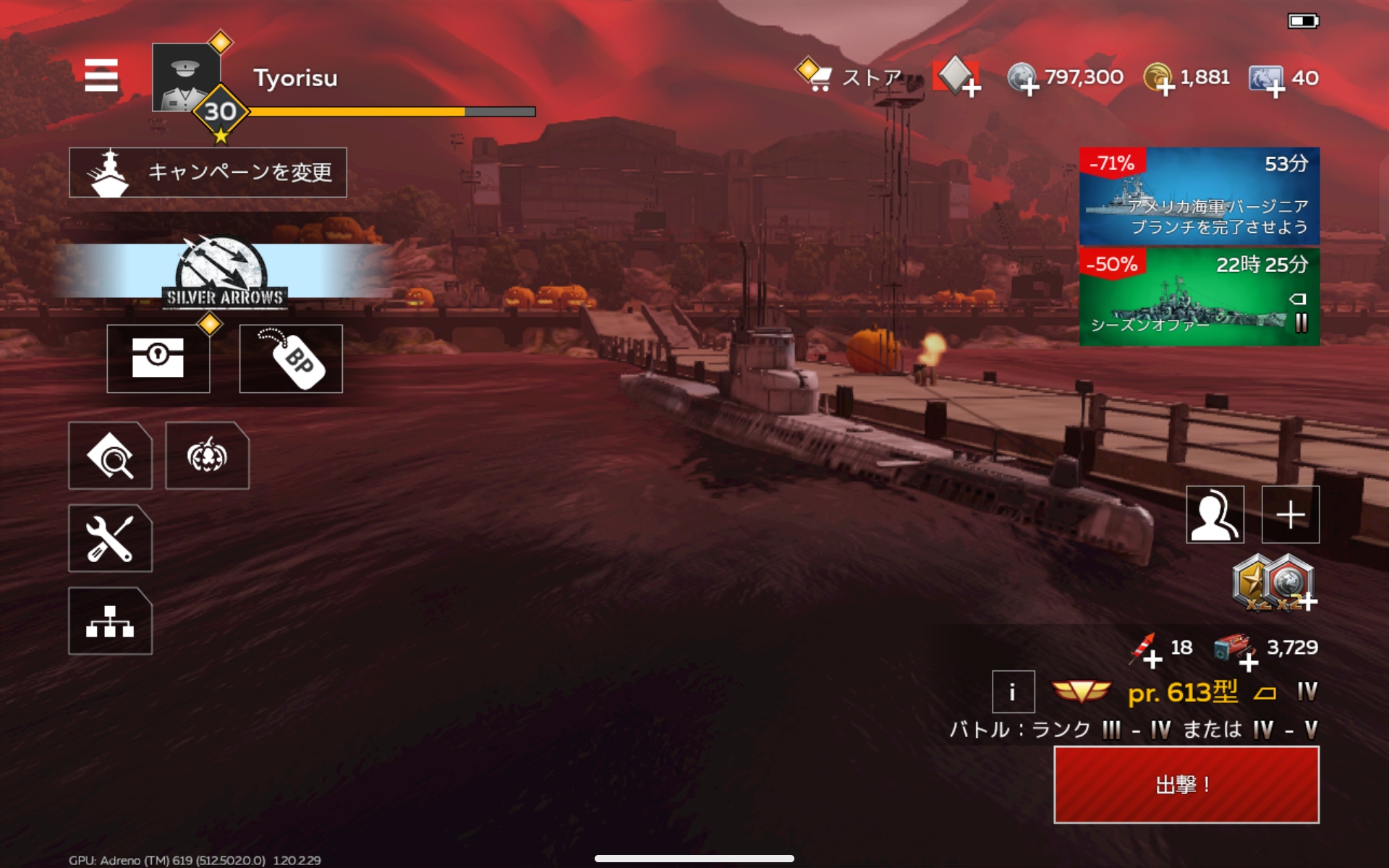 ランク4の海戦って戦艦率高いからそれ用の潜水艦を用意すれば美味しんじゃね?ということで買ってしまった。日本を含めた西側諸国ではウィスキー型として有名であろうこの潜水艦。航洋型潜水艦として当時最高の性能が求められたプロイェークト611潜水艦とは異なり、哨戒型潜水艦の系譜に連なるプロイェークト613は廉価版的な性能が求められました。それでも大戦期の潜水艦と比べれば遥かに優秀な性能を発揮し、航続性能にも余裕があったことから外洋での作戦行動も可能という当時のソ連海軍に最も適した潜水艦として高く評価され、折しも強力な海軍力を持つアメリカに対し水上艦で艦隊決戦を挑むのは自殺行為であることが認識されつつあった時期とも重なり、プロイェークト613潜水艦はそれらに代わる実質的な主力艦として期待されるようになります(但し実際に運用してみると通信設備が貧弱な潜水艦の集中運用は難しいことが明らかになり、水上艦による艦対艦攻撃も再評価されるようになる)。一方でそれに対する西側諸国の対応も素早く、元々Uボート対策用の各種研究が進んでいたことからそれを継続する形でソ連海軍に対抗。潜水艦からの魚雷攻撃のみでの目標達成は困難であると考えられ、敵対潜哨戒網の範囲外から攻撃可能な有翼ロケット潜水巡洋艦の整備が志向されるようになっていきます。wtmでは期待通り敵の戦艦とマッチングしやすいのですが、そうなる理由もそれなりにあり、このランク帯の潜水艦はかなり不遇です。。戦艦の攻撃力が高いため削られやすく、それでいて防御力も高いから一隻沈めるのに一苦労。ランク3までの戦とは様相が異なります。だから潜水艦を使う人が少ないんですねえ。なるほどな!まあそのぶん潜水艦同士の不毛な戦いが起き難いので、その点はよかったかなと思いますはい。何故か対空砲を手動で操作できるため、毎分200発の速度で砲撃という戦い方も出来なんだかんだで面白みのある潜水艦です。