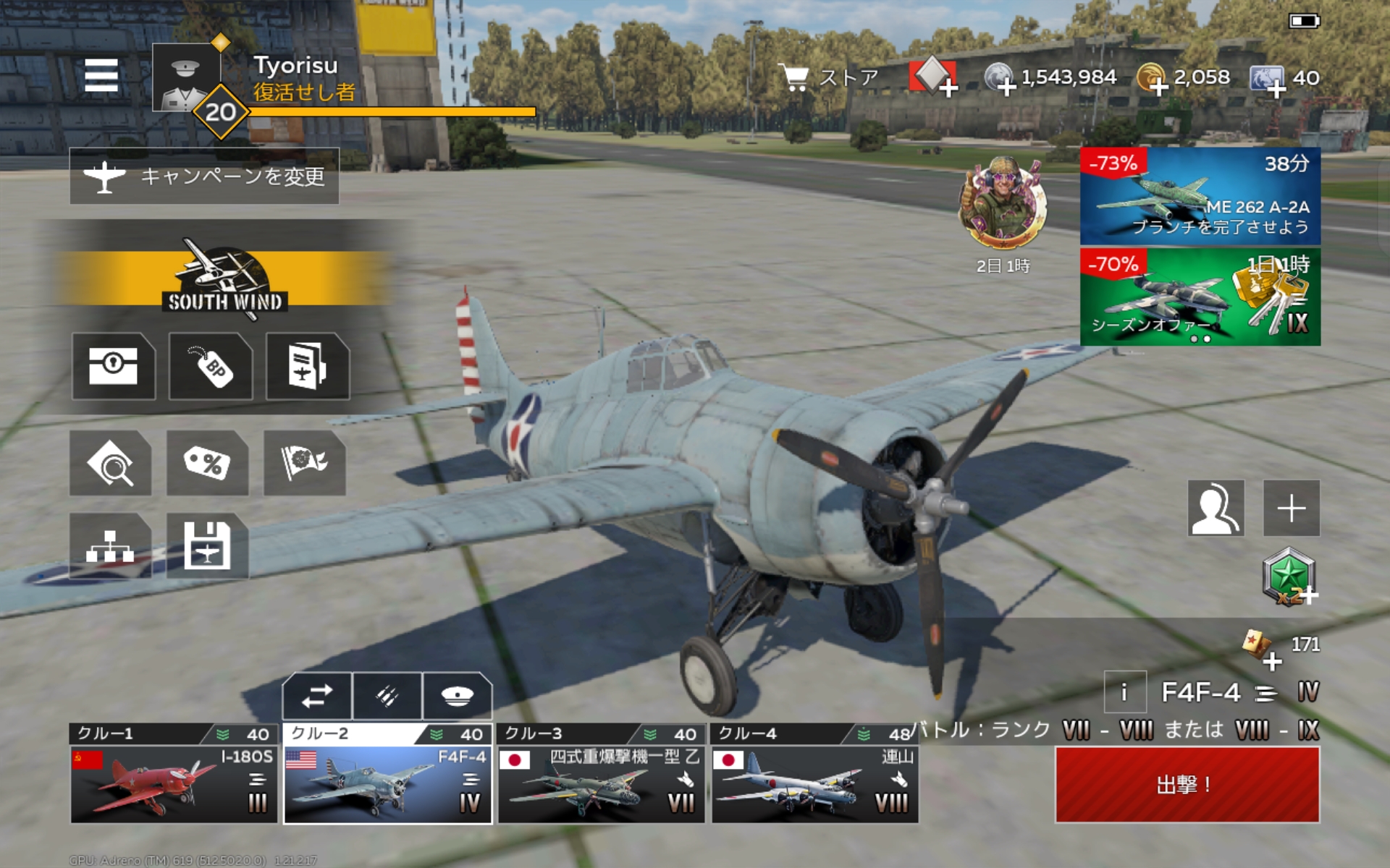 War Thunder Mobile War Thunder Mobile日記109・戦闘機F4F-4 nanashi64 設計図貯めて入手定期。火力強化版ワイルドキャットです。機銃が4挺から6挺になりました。その代償に飛行性能が悪化してしまい、最終型であるFM-2は4挺に戻ってしまったことから失敗作と見なされることもしばしば。wtmでもF4F-3と比べランクが上がったため火力向上の恩恵を感じ難く、運動性能が低下しただけじゃね感が拭えませぬ。こいつがXP-55と同じランクってどうなんすかね。速力普通火力普通旋回並み以下で良いところが見当たらねえ。 著者について nanashi64 Administrator ウェブサイトにアクセス すべての投稿を表示 Post navigation Previous: 魔王スぺルヴィアNext: World of Warships Blitz日記372・クリスマスイベント最終報酬メモ コメントを残す コメントをキャンセルメールアドレスが公開されることはありません。 ※ が付いている欄は必須項目ですコメント ※ 名前 メール サイト 関連記事 War Thunder Mobile World of Warships Blitz日記372・クリスマスイベント最終報酬メモ nanashi64 0 War Thunder Mobile War Thunder Mobile日記108・戦闘機I-180 nanashi64 0 War Thunder Mobile War Thunder Mobile日記107・爆撃機B-29A-BN nanashi64 0