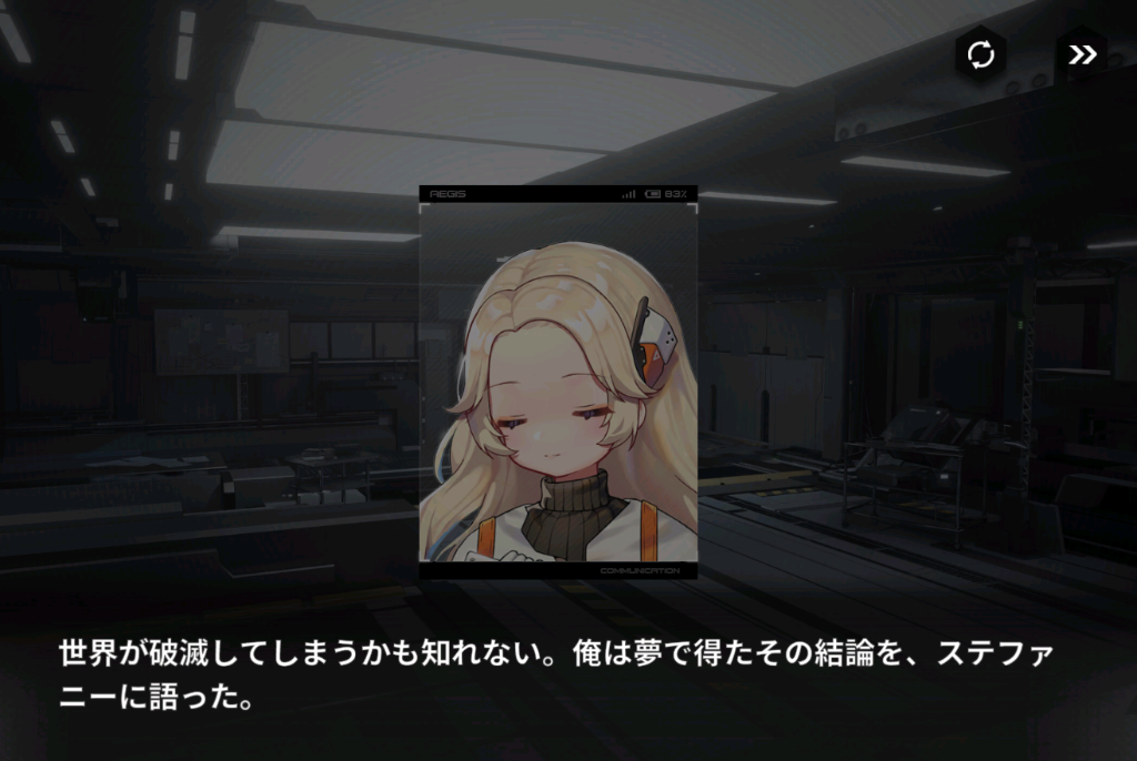 そしてここから外伝イベントの話が入り、主人公はその情報を上官であるステファニーに伝えます。しかしステファニーも人格チップの削除に賛成しており、対策は改竄できる立場の人間の監視を兼ねた警護を行うに留まります。予定通り人格チップは削除されてしまい、思ったよりも地味な改変です。結果から言えばこれが大きな変化になったわけですけども。