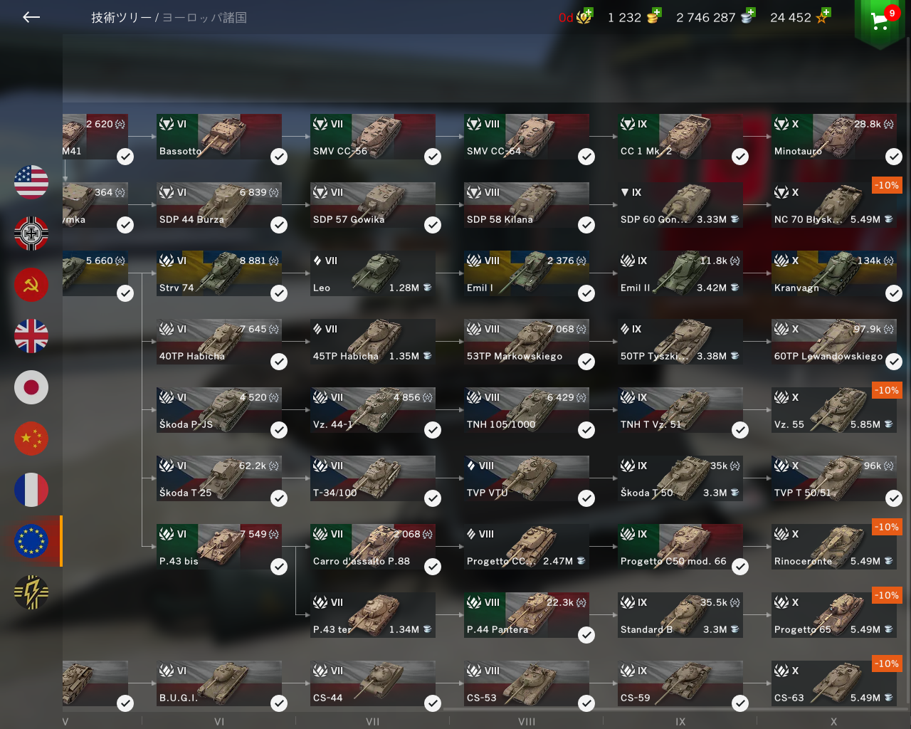 World of Tanks Blitz World of Tanks Blitz日記185・欧州ツリーポーランド駆逐戦車ルートコンプリート nanashi64 1 分の読み取り 0 フリー経験値を使って終わらせました。ティア8まで使ってみた感想としては、劣化ソ連TDというのが正直なところ。近距離なら高DPMを出せるものの、無砲塔且つ味方の射線を塞いでしまうため長所を生かし難く、離れるほど威力が下がるという欠点だけが目立ってしまいます。無砲塔でも122-54みたく高旋回ならよかったのだが…。ともあれ研究が終わったので、いつものように新ツリーが実装されるまでお休みかな。じゃあの 著者について nanashi64 Administrator ウェブサイトにアクセス すべての投稿を表示 投稿ナビゲーション 前: ハツリバーブ日記043・イベント「雪明かり」開催中次へ: War Thunder Mobile日記120・爆撃機B-17E(JP) コメントを残す コメントをキャンセルメールアドレスが公開されることはありません。 ※ が付いている欄は必須項目ですコメント ※ 名前 メール サイト 関連記事 World of Tanks Blitz World of Tanks Blitz日記186・重戦車オブイェークト244 nanashi64 0 World of Tanks Blitz World of Tanks Blitz日記184・重戦車アトラス nanashi64 0 World of Tanks Blitz World of Tanks Blitz日記183・多国籍ツリー重戦車ルートコンプリート nanashi64 0