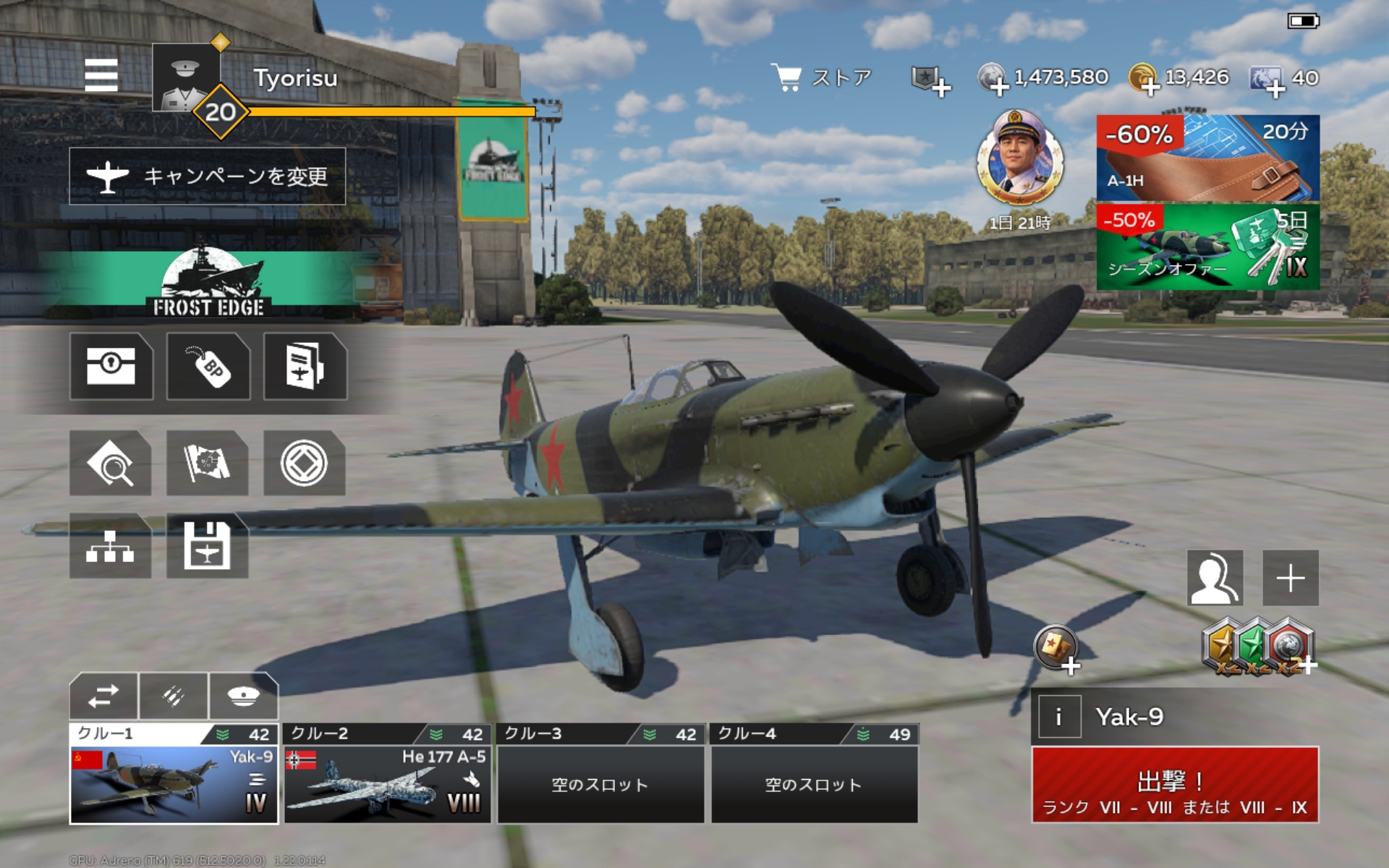 設計図を貯めて入手定期。ソ連最良のレシプロ戦闘機として有名であろうこの戦闘機。空戦性能自体は同時期に開発が進んでいたYak-3の方が優れていたそうです。しかしながら複座機から発展したYak-9は余裕のある機体設計で、滞空時間の重要性を赤軍に知らしめた戦闘機となりました(日米あたりと比べるとこれでも短いが)。朝鮮戦争ではF-51やF-80を撃墜したりと、MiG-15が配備されるまで赤い国の主力戦闘機として活躍することになります。wtmに於いては良くも悪くもソ連戦闘機ですね。日本機ほどじゃないけど格闘戦が得意で撃たれ強いから乱戦もこなせるオールマイティな戦闘機です。まあ同じランクに上位互換的な性能を持つXP-55が居ますが…